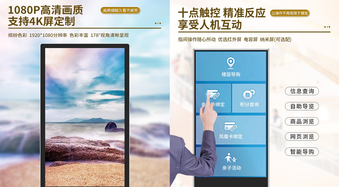 | 49" | 电容 | 1920*1080 | 350cd/m² | 178°/178° | IPS | 16.7M | RGB | 10点 | ≤5ms | ≤130W | 立式 |