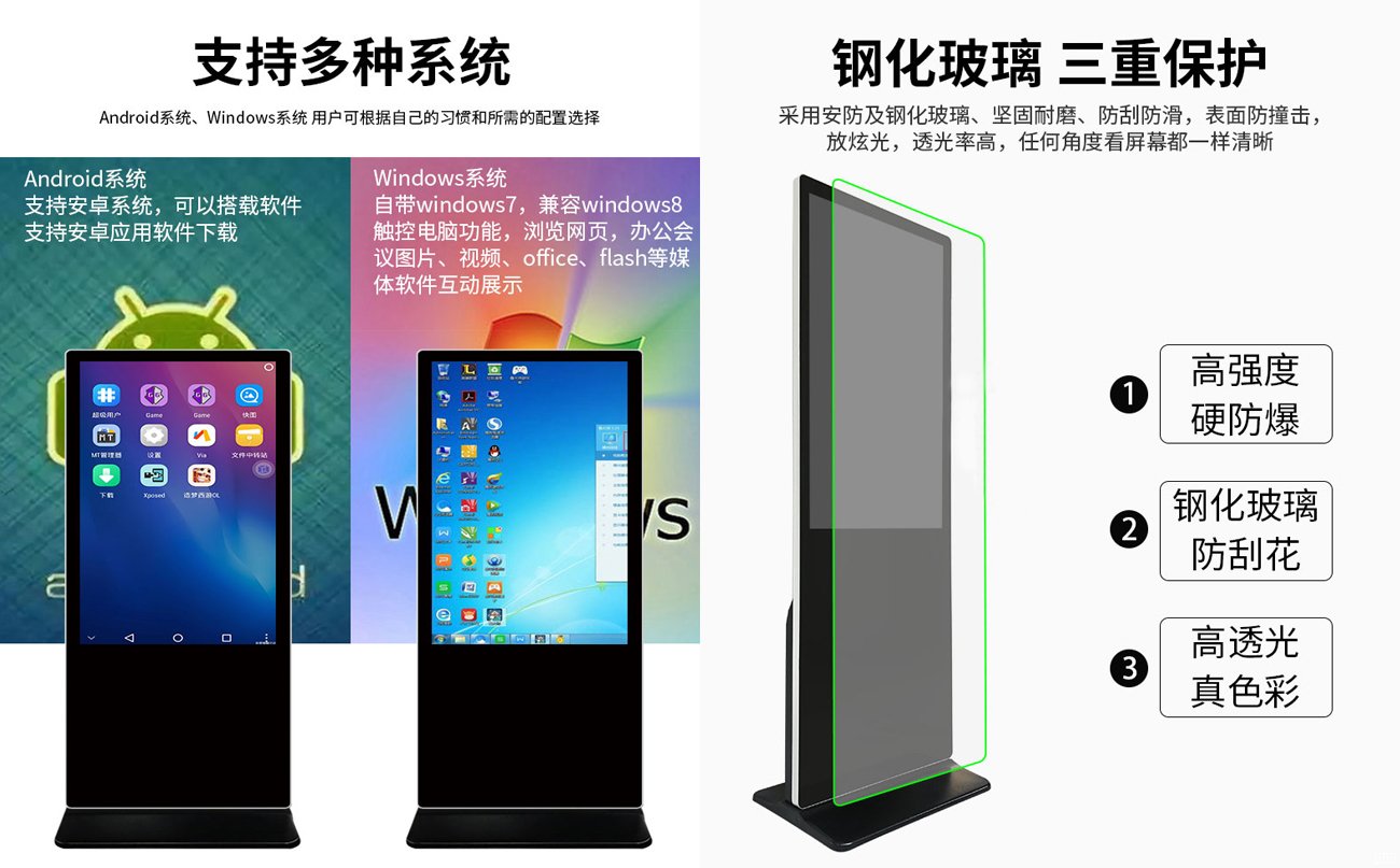 | 55" | 电容 | 1920*1080 | 400cd/m² | 178°/178° | IPS | 16.7M | RGB | 10点 | ≤5ms | ≤150W | 立式 |